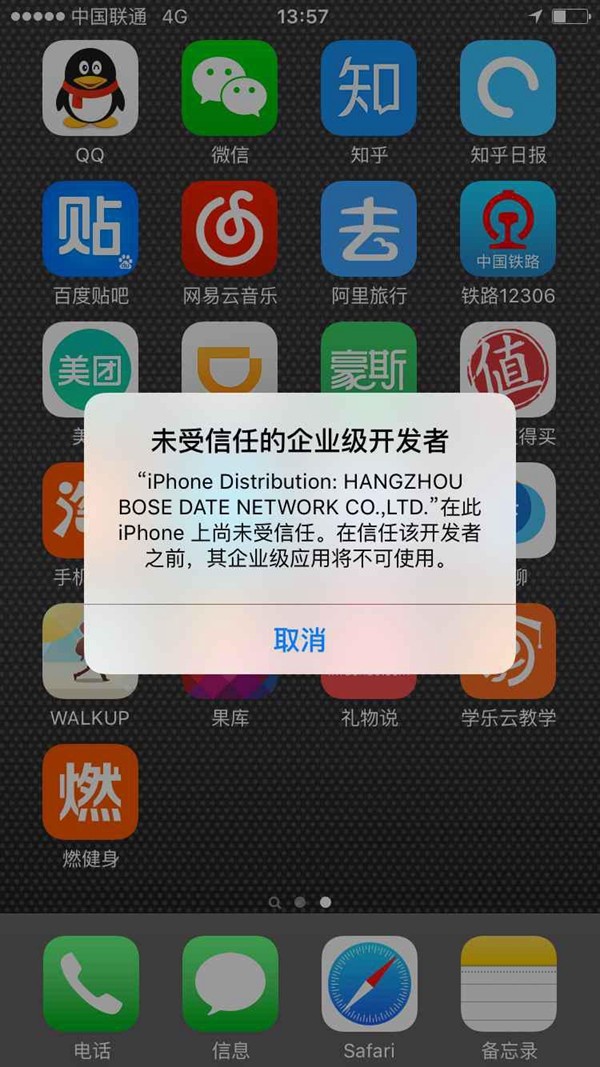 3、打开APP时弹出的提示框点击取消。