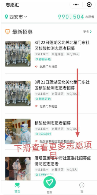3、选择【首页】查看各志愿者信息,选择符合自己意向的进行报名即可
