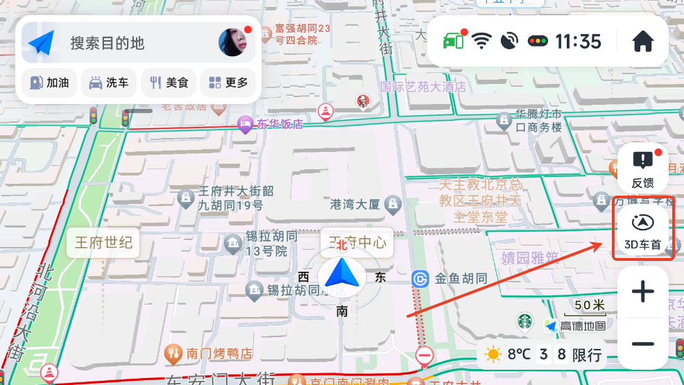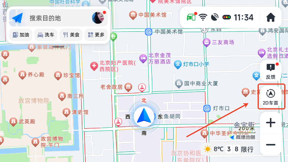 1.在软件右侧有一个2D车首/3D车首/2D北上按钮。