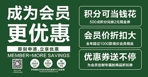 华润万家会员服务,为顾客提供更优质的商品和更优惠的活动。可在华润万家旗下门店及线上平台(包括华润万家APP、华润万家旗下各个官方微信公众号、微信小程序等)免费注册入会,即享购物积分、会员指定优惠等权益。更多优惠详见华润万家旗下门店信息及线上平台。