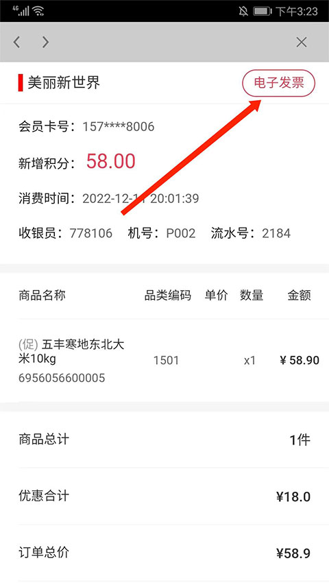 4、进入订单详情界面,选择右上角“电子发票”选项,正式开始。