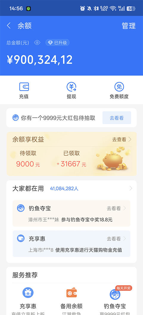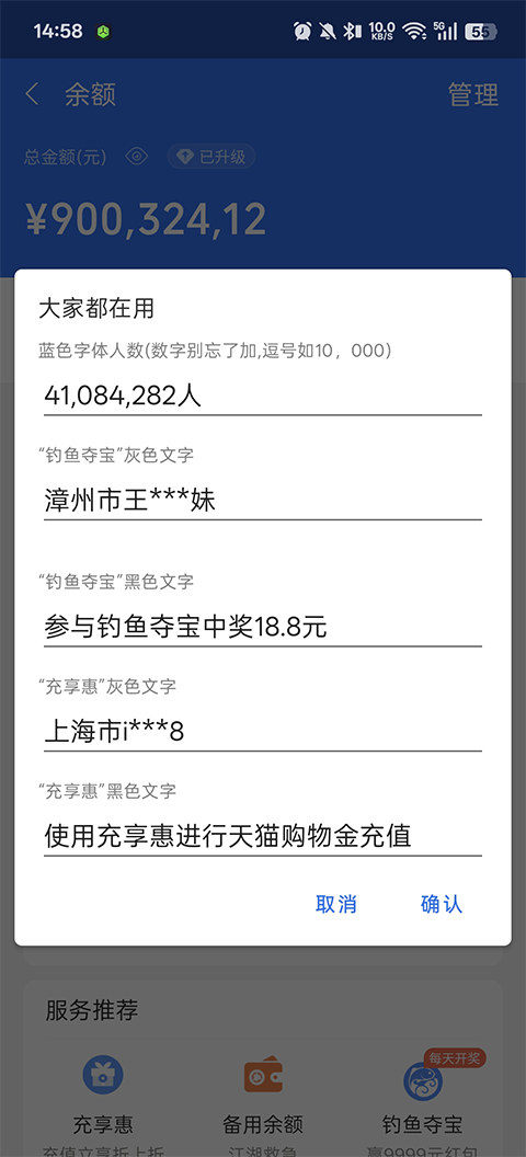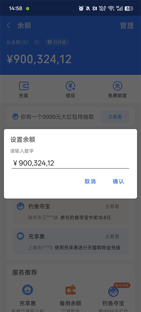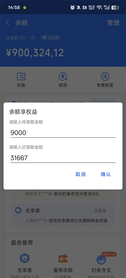 3、为了效果逼真,我们还可以来输入余额享权益。