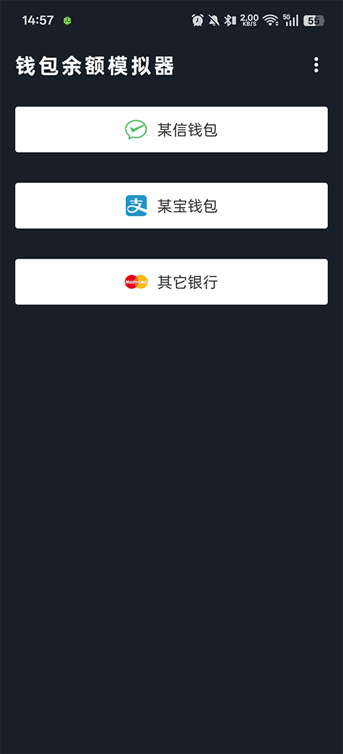 钱包模拟器2025最新版是一款非常有趣的余额生成工具。在软件内可以模拟某信、某宝和诸多其他银行钱包的个人页面,并且为用户提供随意修改功能,用户可以在某信上设置自己余额,并且想输入多大就输入多大,之后就会立刻生成用户想要的余额图片。同时为了方便用户的分享,软件所生成的图片是没有任何的水印,保证不会出现任何的穿帮现象。除此之外,钱包模拟器软件内存非常小巧,不会占用手机多少存储空间和运行内存,界面简单,没有任何广告弹出,只有一个编辑框。有感兴趣的用户欢迎下载体验!