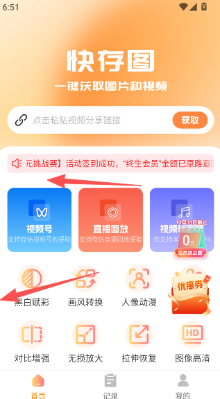 2、之后,在首页这里选择自己要使用的功能,比如:视频号、直播回放等专业图像处理部分。