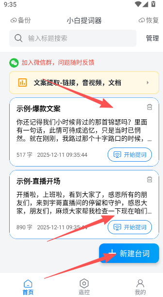 2、多功能文案处理:支持直接编辑提词文案,并能从本地音视频文件中快速识别与提取台词文本。