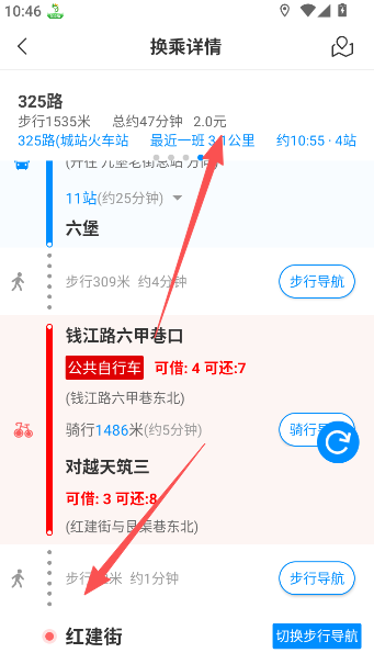 3、线路及换乘信息详情在此均有展示,点击选择前往即可。