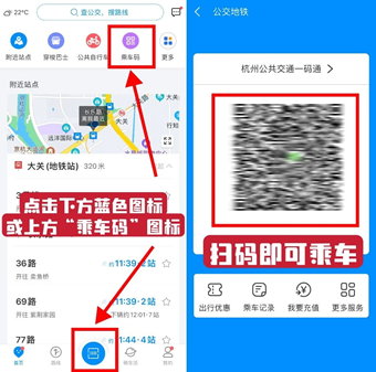 2、首次登陆的小伙伴需进行实名认证,领取杭州公共交通“一码通”电子卡,充值后即可刷码乘车。打开乘车码,将杭州公共交通一码通对准机具的“扫码付款区”扫一扫,听到提示音“叮,请上车",支付成功。