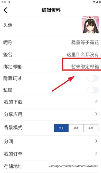 3、进入设置界面,点击绑定邮箱。