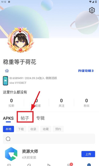 1、进入个人中心界面,点击帖子。