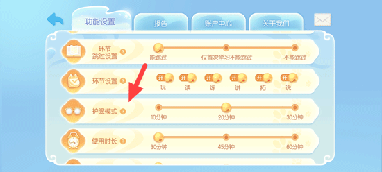 2、在功能设置版块,即可设置相应时长,到达设置时间就会暂停学习操作。