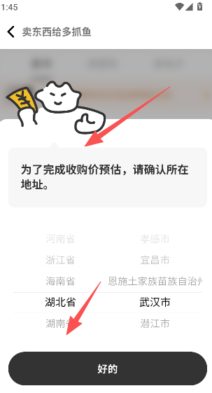 4、为了更方便多抓鱼平台更好的对书籍进行估计,请确认书籍所要售出的位置。