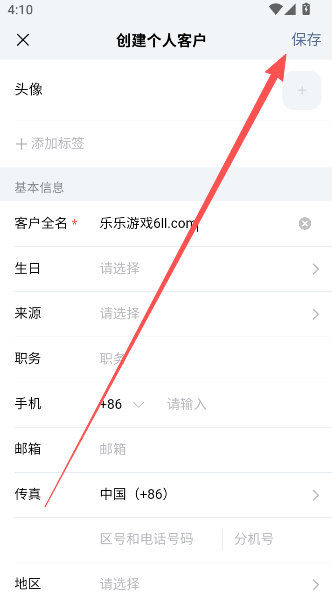 3、填写客户各项资料,点击保存,即可完成创建部分。