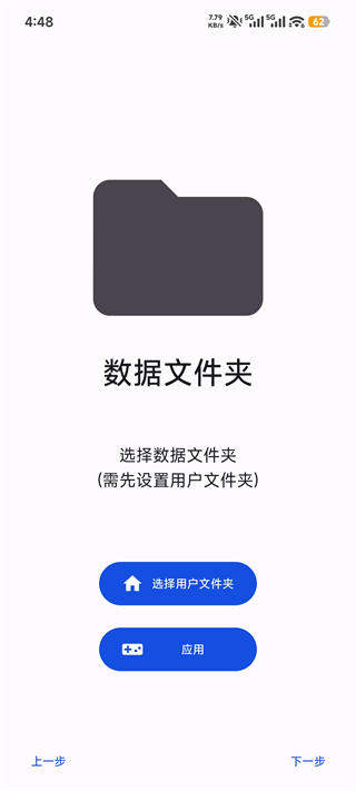 3、选择数据文件夹,但需要先设置用户文件夹;