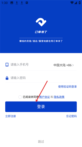 2、登录界面,输入手机号和密码,同意协议后点登录,可验证码登录,有立即注册、忘记密码入口。
