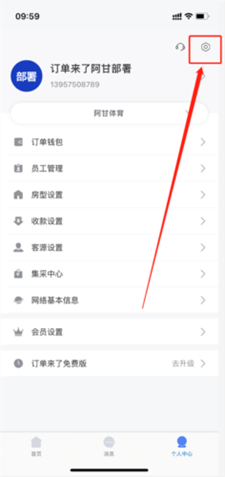 1、首先来到手机端订单来了APP,如果是已经登登陆,在【个人中心】点击齿轮。