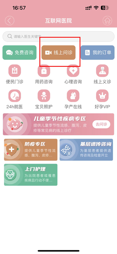 1、选择“线上就医”,根据自身情况选择科室和医生进行问诊。