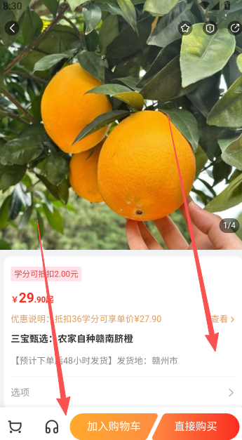 4、点击商品选择直接购买,如果想要购买多件请先添加到购物车中。