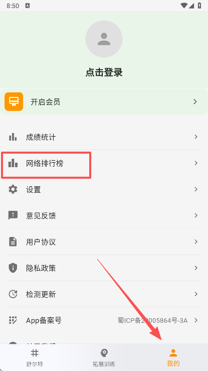 1、来到我的个人中心,这里提供了网络排行榜功能