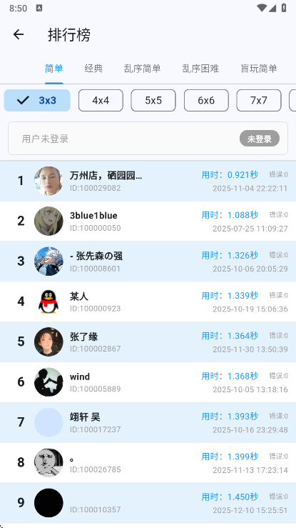 3. 全球排行榜:成绩精确到毫秒,支持竞赛挑战,看看能否进入前200名。