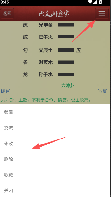 3、内置交流功能:配备即时通讯工具,方便用户与卦友实时交流问卦心得,获得及时反馈。