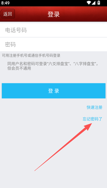 3、在登录页面选择忘记密码了的选项。