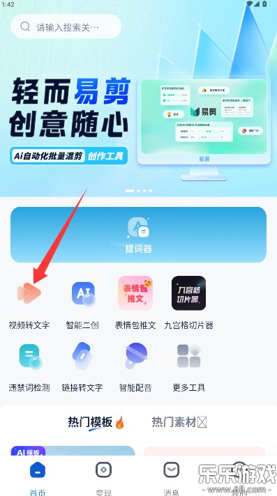 3、进入应用首页后,在功能列表中选择视频转文字工具按钮进入具体操作界面。