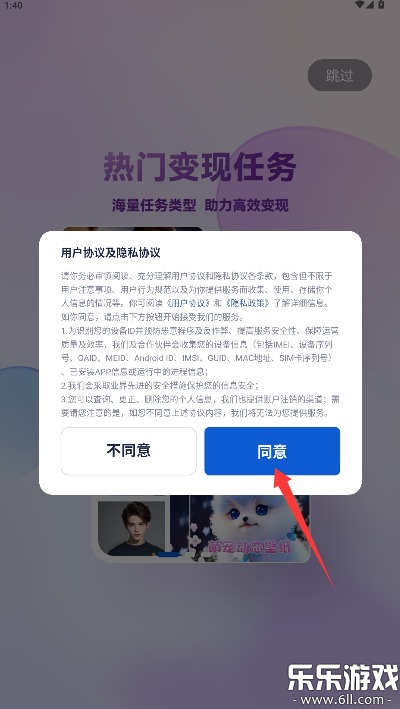 1、首次使用需仔细阅读用户协议及隐私协议内容,确认后点击同意按钮进入应用。