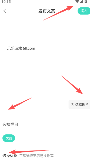 3、输入文字内容,选择栏目、图片和标签话题,点击发布。