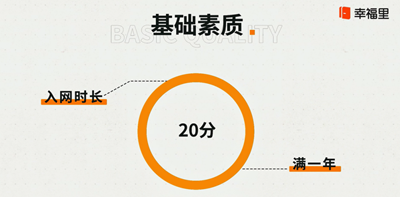 第一,基础素质20分:注册入网时间越长,幸福分就越高,只要满一年,就是满分。