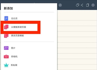 点击左上角的“+”,然后点击下方的从模板新建页面