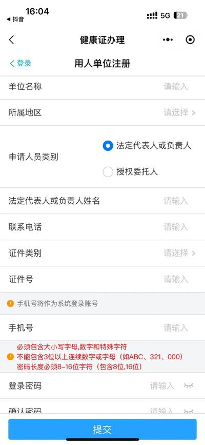 以用人单位为责任主体,请由法定代表人/负责人或授权委托人进行注册填写。