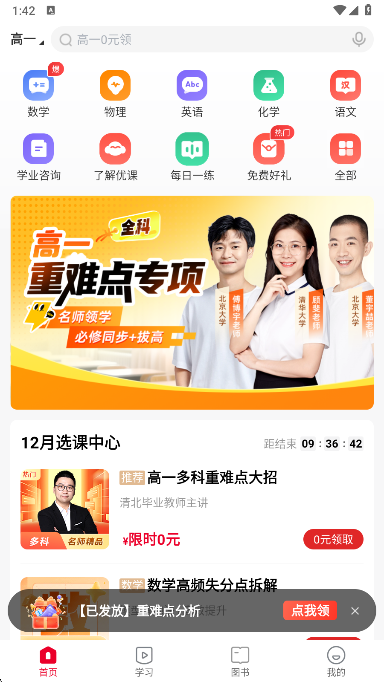 3、点击您想要学习的学科内容,可以获取到专业的课程