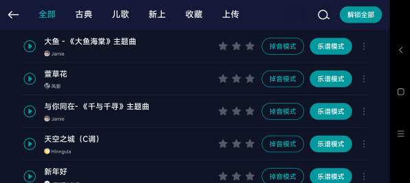 掉音跟弹功能让你轻松弹奏各种流行、古典的乐曲。丰富的曲库,满足不同喜好和水平的用户,让您在演奏中感受音乐的魅力。