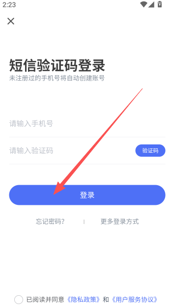 1、下载进入软件,使用手机号码短信验证码的方式进入。