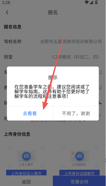 5、确认报名,请按照报名信息页面内容部分补充完成,提交等待平台审核通过以后,驾校会主动联系到你去学习和报名其他驾考科目啦。