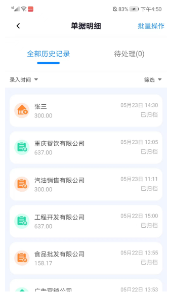 2、进入单据明细界面,可看到全部历史记录,