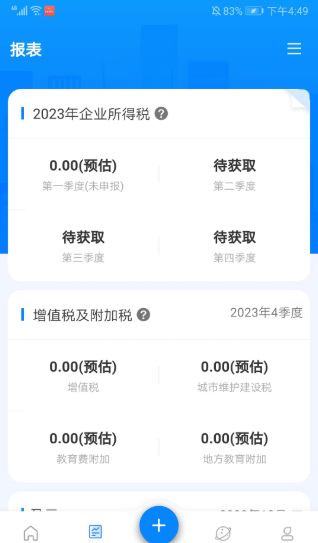 4、进入报表界面,可以查看当前企业每个季度的所得税、增值税、附加税等分类,