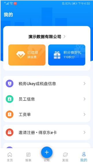 7、进入我的界面,可以查看税务Ukey或税盘信息、员工信息、工资单等内容,