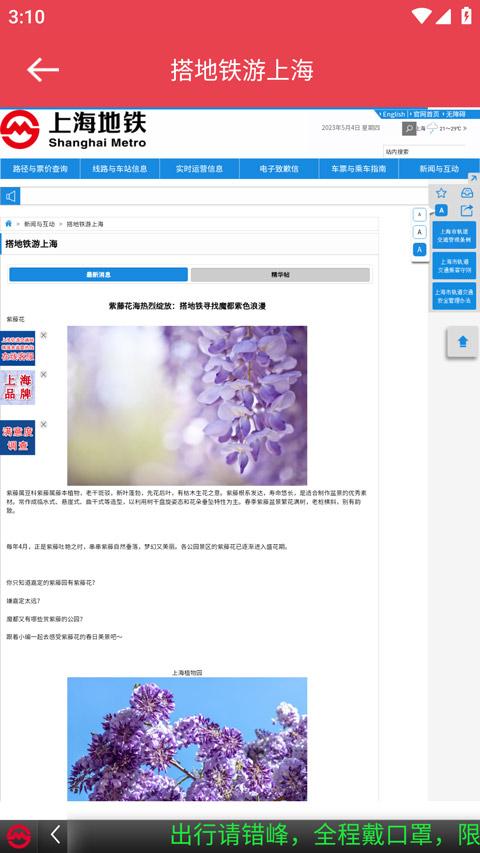 2、进入搭地铁游上海板块,可以在这里查看最新的乘地铁游上海的最新攻略