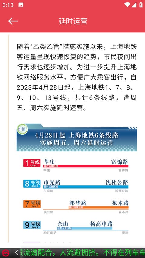 3、在运营板块,可以查看地铁最新的运营消息与延时消息
