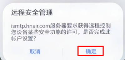5. 等待手机连接服务器,然后在“远程安全管理”中,点击确定。