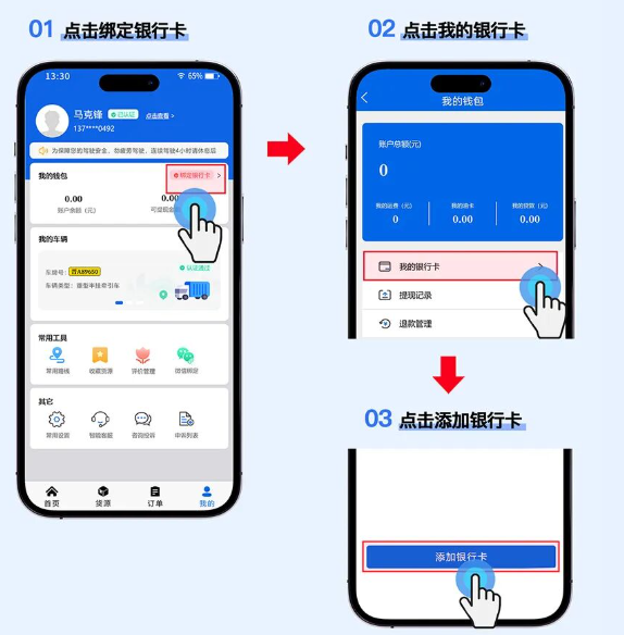个人中心 》》》我的钱包 》》》银行卡 》》》添加银行卡 >》》确认