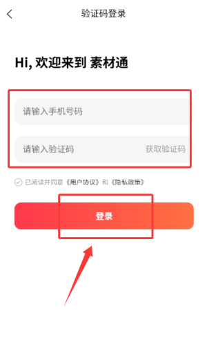 2、在登录页输入手机号验证码,点击登录完成账号验证。