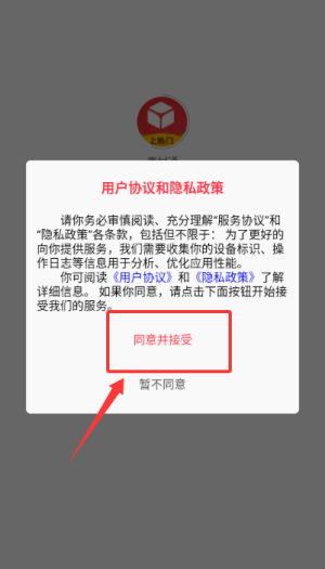 1、于用户协议弹窗中点选同意并接受,确认后进入验证码登录页面。