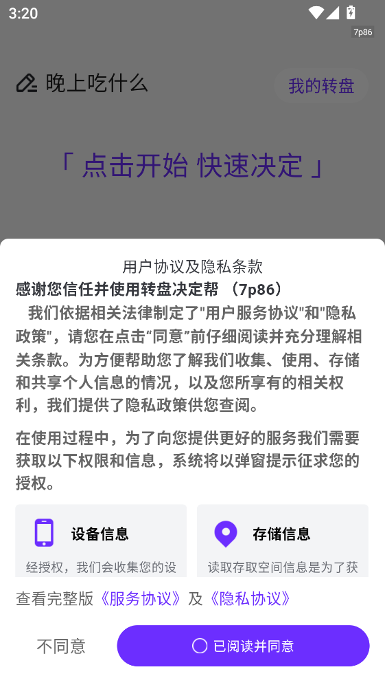 1、首先需要同意隐私协议。