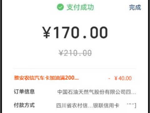 5.跳转云闪付支付,在卡列表中选择农信汽车卡,查看优惠活动及优惠金额。(用户需提前在云闪付绑卡,若同时有多种营销活动,用户可自由选择,活动名额不足或已参与有对应的提示)
