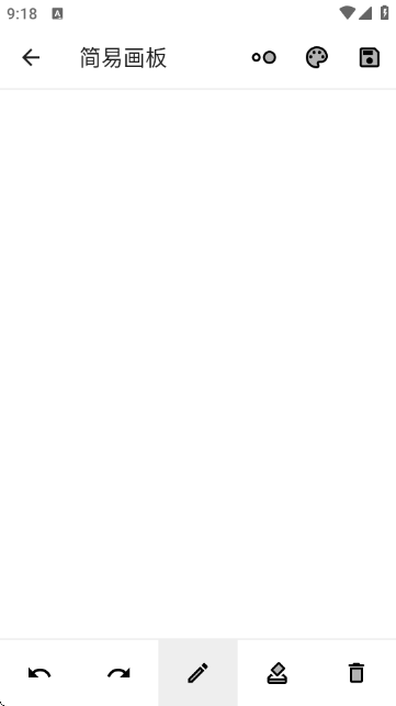 6、进入“简易画板”功能,可在空白画布上自由绘画,底部工具栏提供笔刷、颜色选择、撤销、重做和清空等功能,支持简单创作与记录。