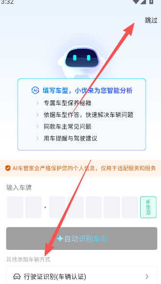 2、添加所驾驶的车辆车型,或是通过输入车牌号码的方式进行分析。