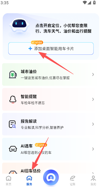 4、服务版块可添加用车卡牌,帮助你更好的完成汽车的使用,以便获得更加良好的体验。