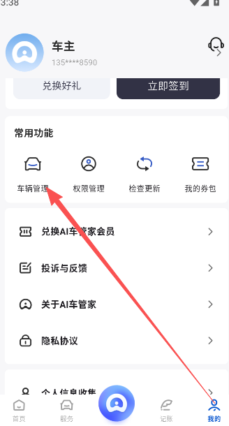 1、点击我的界面,选择车辆管理功能选项。